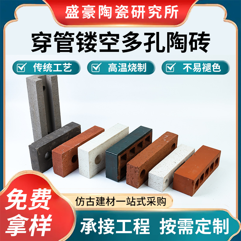 穿管镂空多孔陶砖园林景观透水地面砖建筑外墙工程专用陶土镂空砖