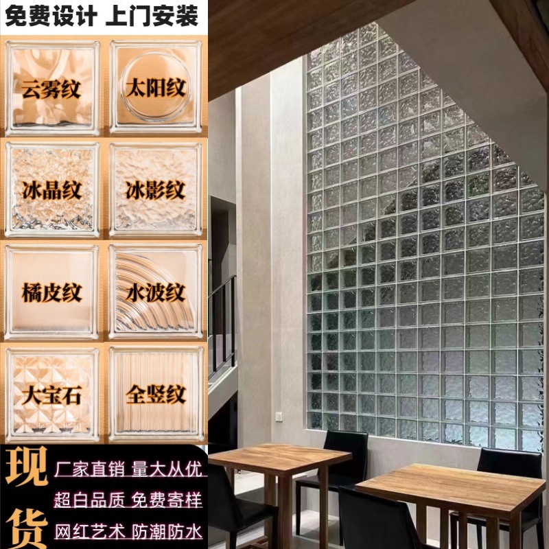 玻璃砖水晶砖超白透明网红卫生间隔断墙实心艺术冰纹屏风背景砖块