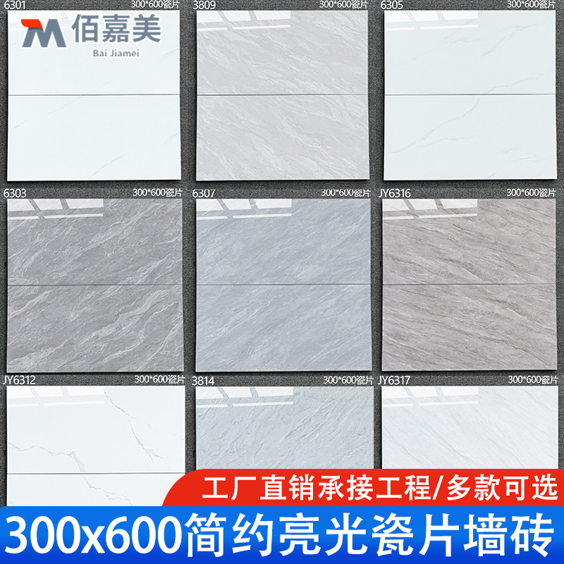 广东亮光釉面砖300x600厨房卫生间墙砖浴室厕所瓷片瓷砖仿石纹