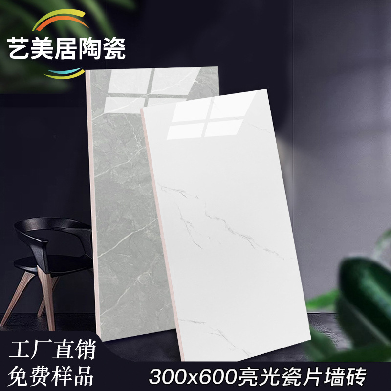 广东佛山厨房卫生间瓷砖300x600墙砖浴室厕所亮光瓷片白色釉面砖