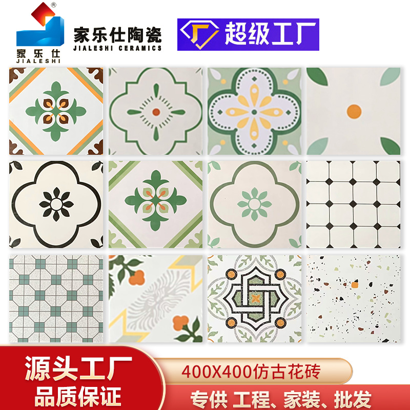 卫生间花砖400x400网红花色防滑瓷砖复古浴室厨房厕所艺术小地砖
