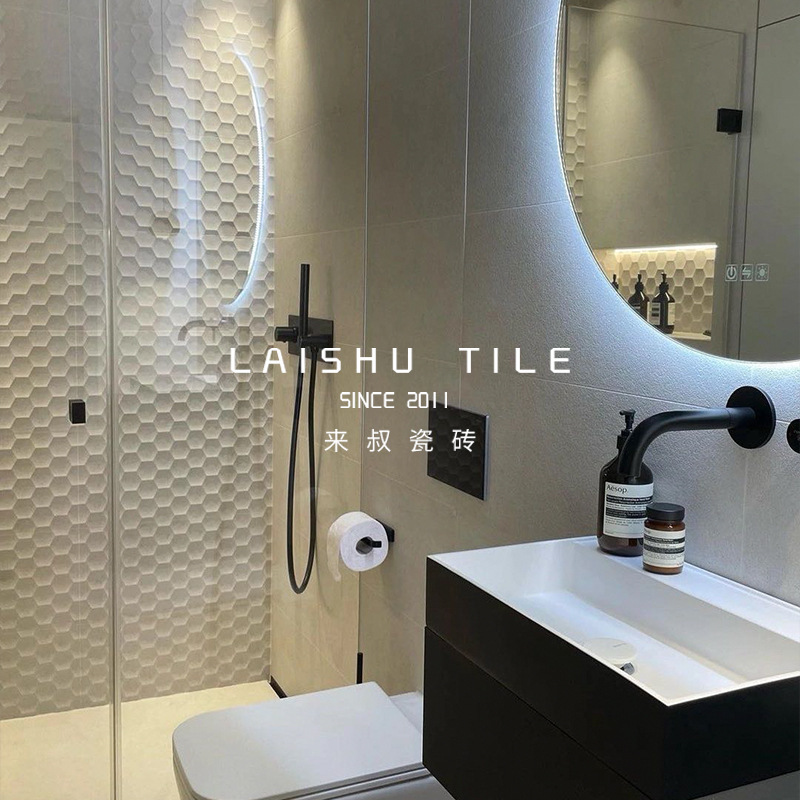 来叔西班牙living素色哑光300*800卫生间凹凸瓷砖菱形蜂窝造型砖