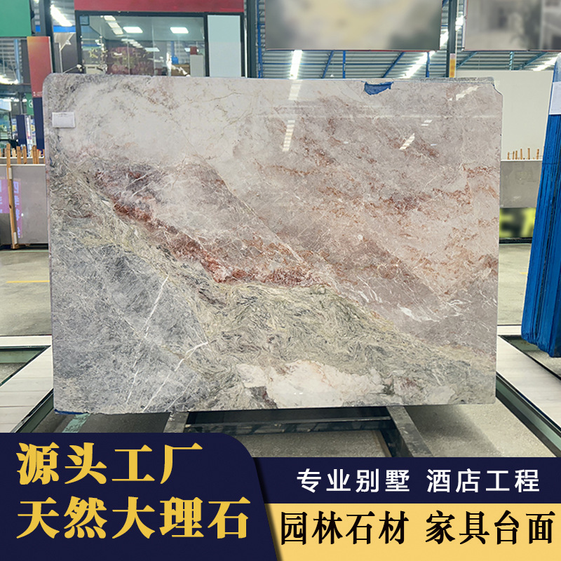 四季粉天然大理石板电视背景墙透光奢石餐桌楼梯石材酒店餐厅吧台