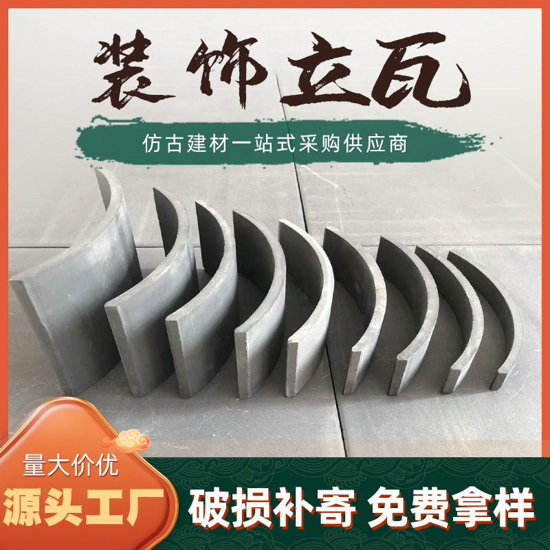 仿古瓦片装饰花园围边围栏小青瓦半圆瓦鱼鳞造型墙铺地立瓦拼花瓦