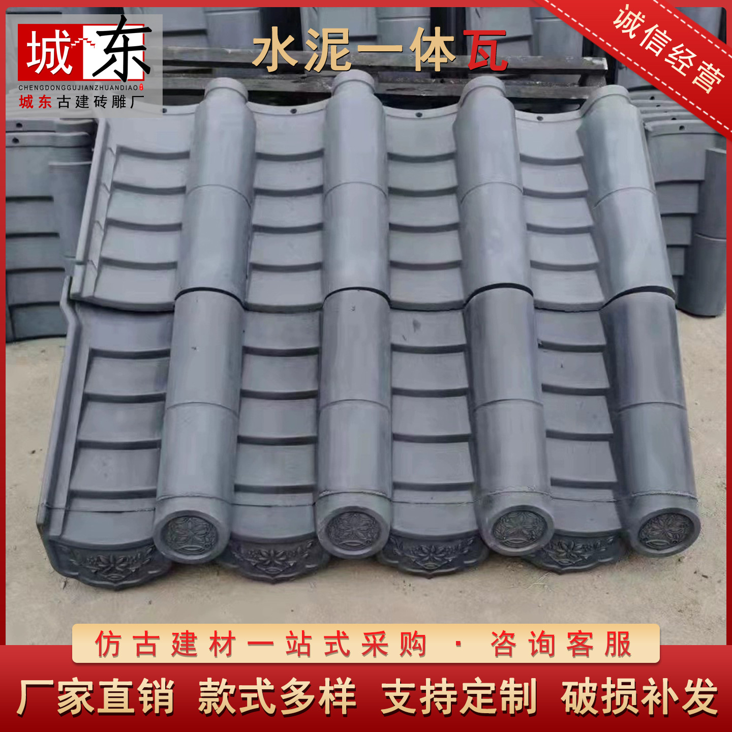 水泥一体围墙瓦24墙37墙通用中式庭院水泥瓦压顶瓦瓦混凝土水泥砖