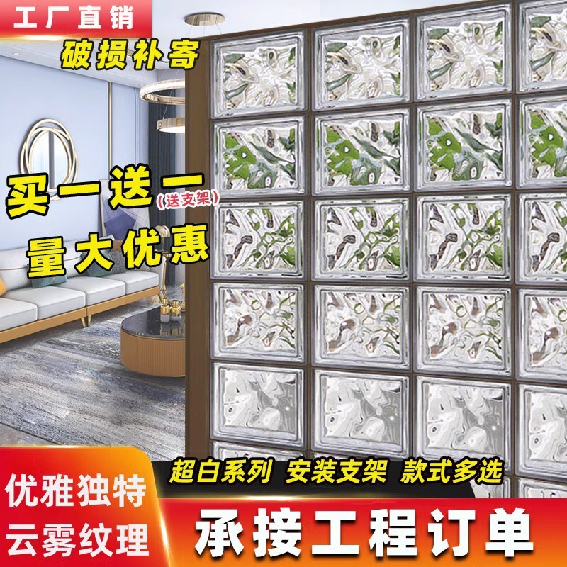 云雾纹超白玻璃砖隔断墙家用方形透明卫生间玄关客厅背景墙水晶砖