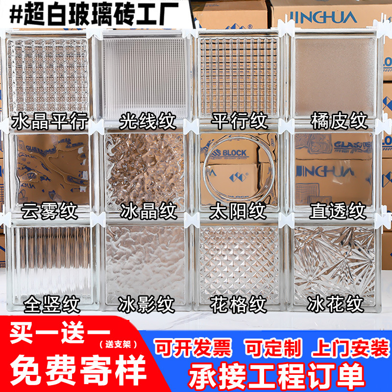 超白玻璃砖水晶砖方形冰影纹玻璃卫生间隔断墙彩色透明空心砖块