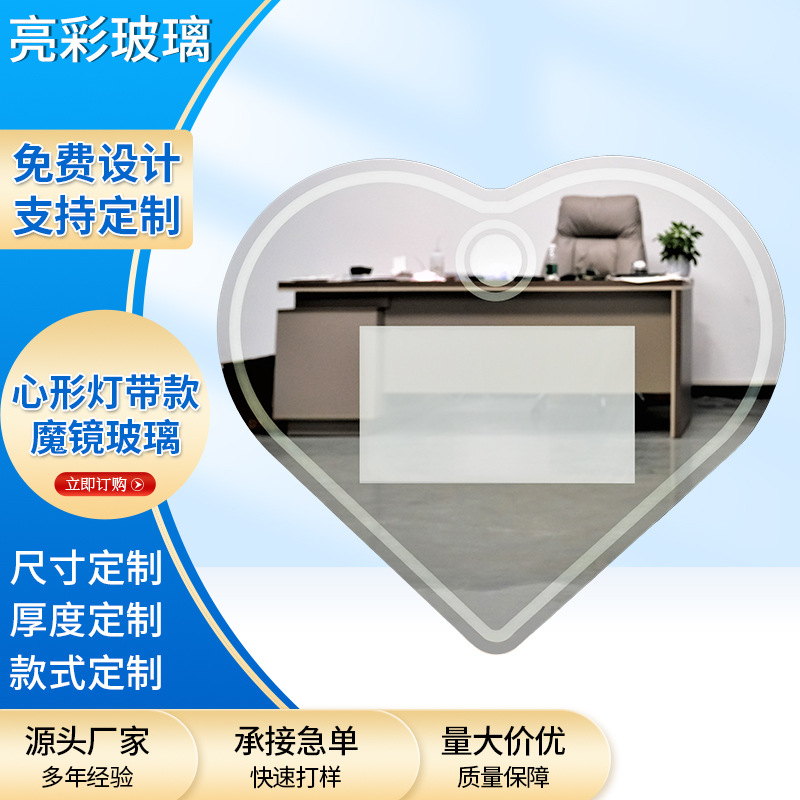 厂家供应心形灯带款魔镜玻璃透光可视镜面镀膜玻璃非导镜面玻璃