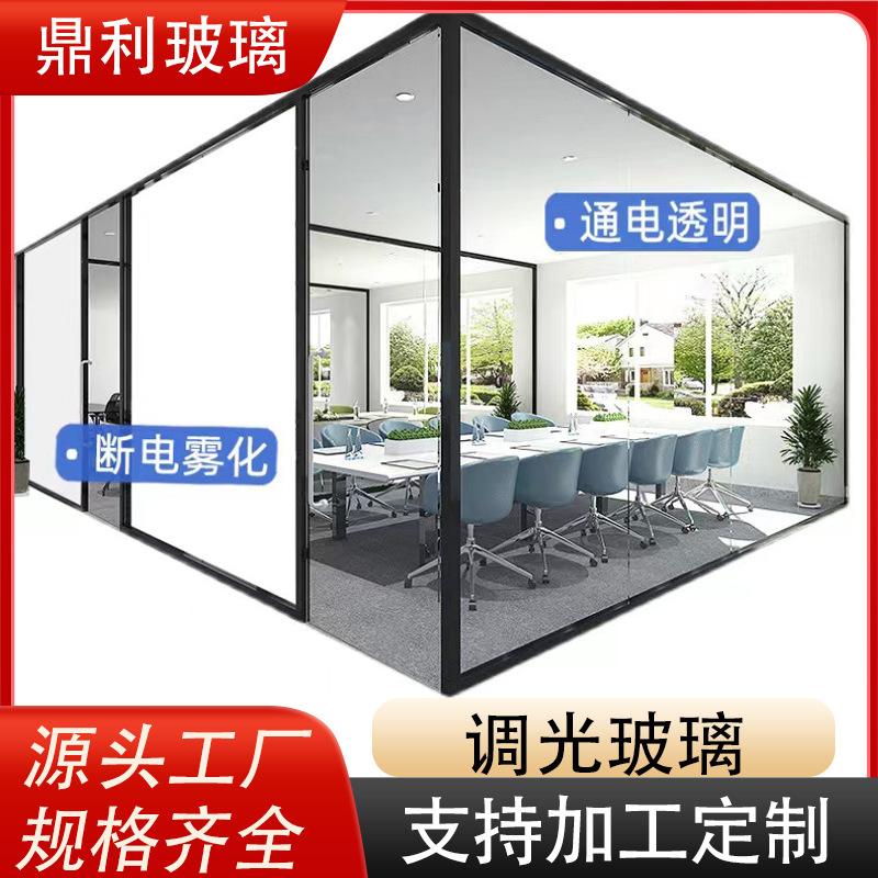 广州厂家通电智能调光雾化玻璃办公室会议室酒店调光玻璃隔断批发