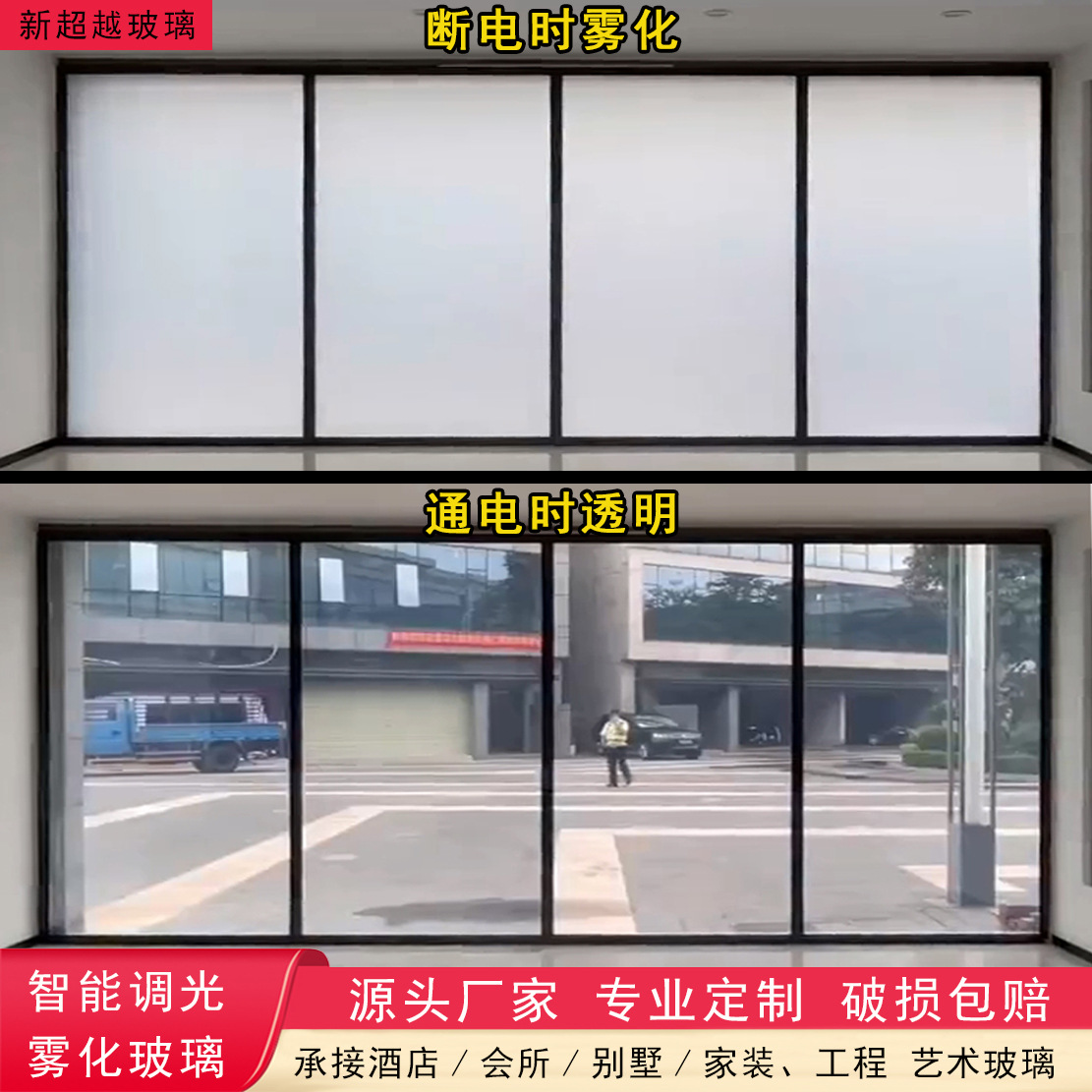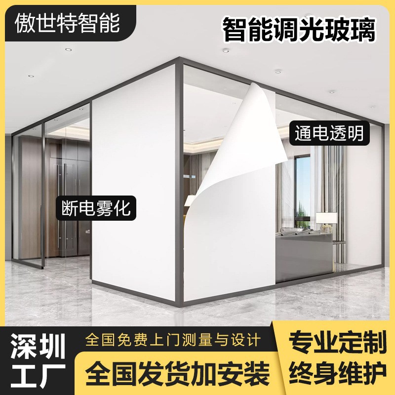 厂家直销智能雾化玻璃调光玻璃电控变色调光膜办公隔断酒店浴室