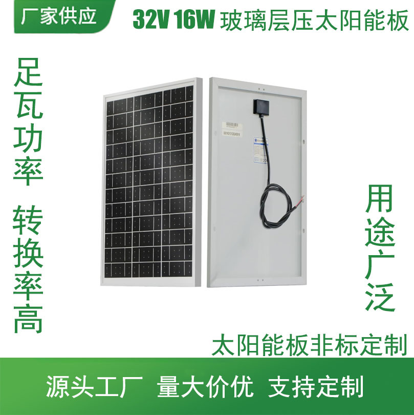 32V16W钢化玻璃太阳能板太阳能电池板太阳能光伏板光伏组件太阳能