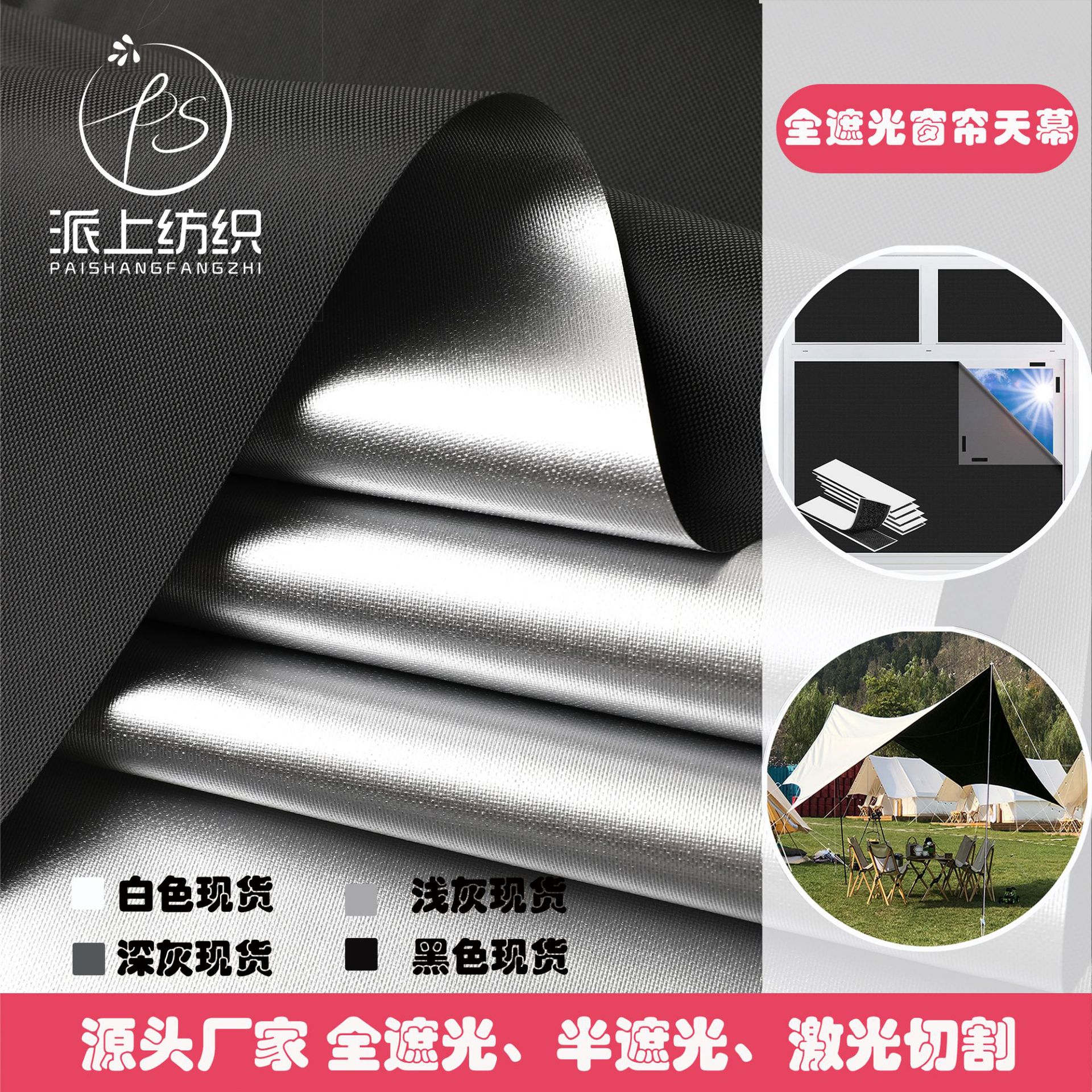 现货 全遮光牛津布天幕布遮光布210D420D遮阳车罩窗帘面料涂银布