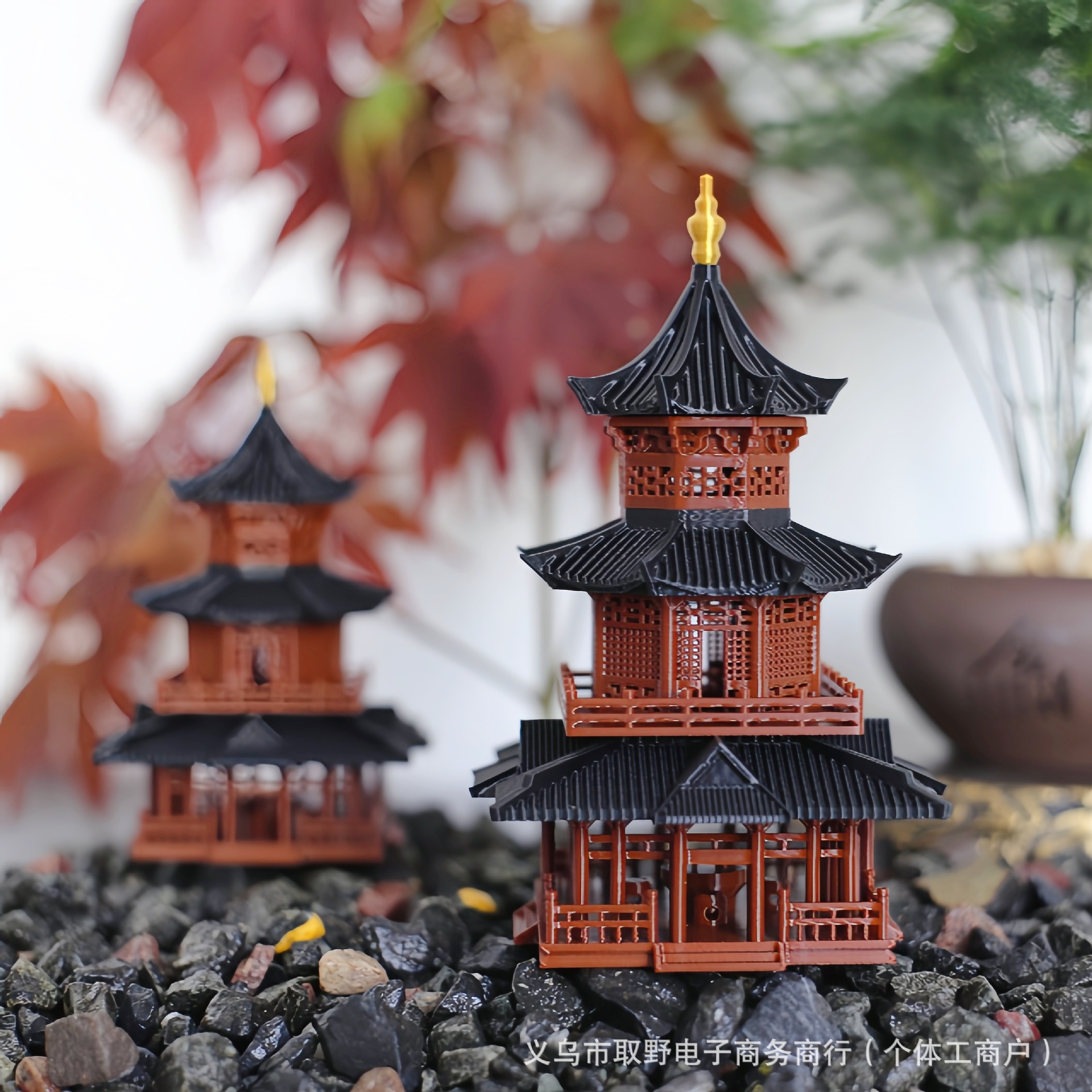 微景观月影楼古风建筑鱼缸假山盆景微造景家居水陆缸生态微型国风