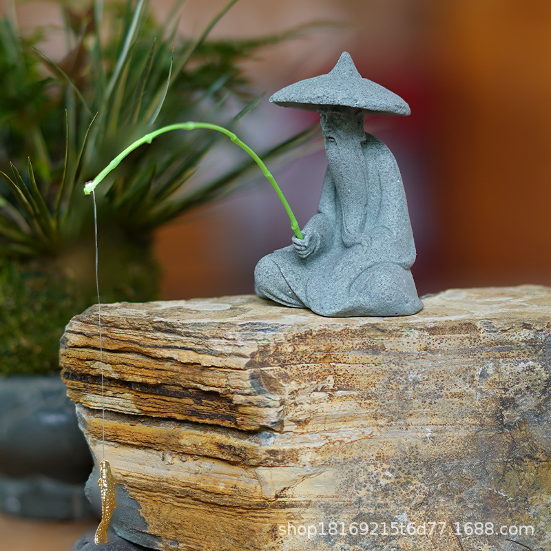姜太公钓鱼假山水景摆件流水人物生态鱼缸内装饰品渔翁微景观造景