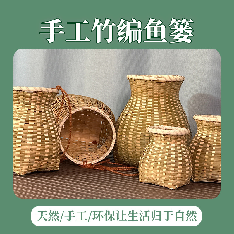 鱼篓竹背篓竹编制品竹篓儿童背篓小背篓装饰篓子舞蹈拍照道具采茶