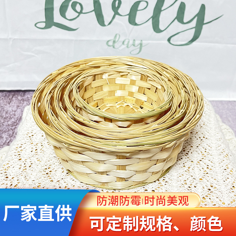 竹编果盘竹编制品点心筐创意装饰果盘木架小号家用餐桌编织果盘