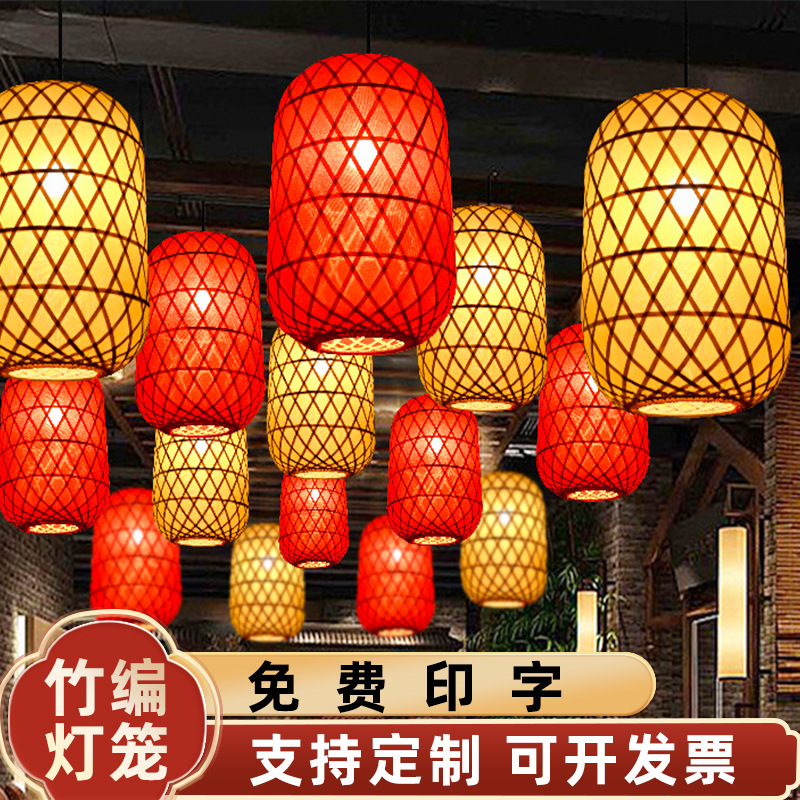 竹编灯笼织竹艺印字日式火锅饭店街道防晒中式装饰手工挂饰藤编