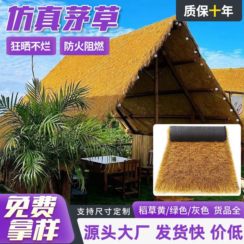 人造塑料仿真茅草瓦假毛草稻草阻燃隔热户外屋顶屋檐景区农家乐用