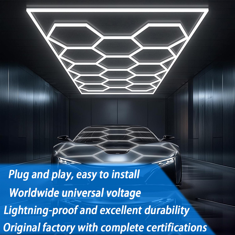 车库灯六边形蜂窝灯110v洗车店贴膜吊顶汽车美容工位灯中山灯具