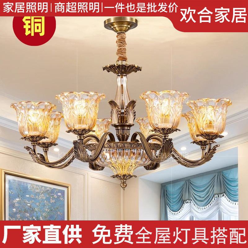 新品美式吊灯全铜客厅灯具欧式餐厅灯卧室灯现代简约大气复古灯具