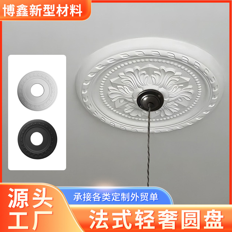 法式灯盘PU线条仿石膏灯盘欧式吊灯底座奶油底盘配件美式客厅吊顶