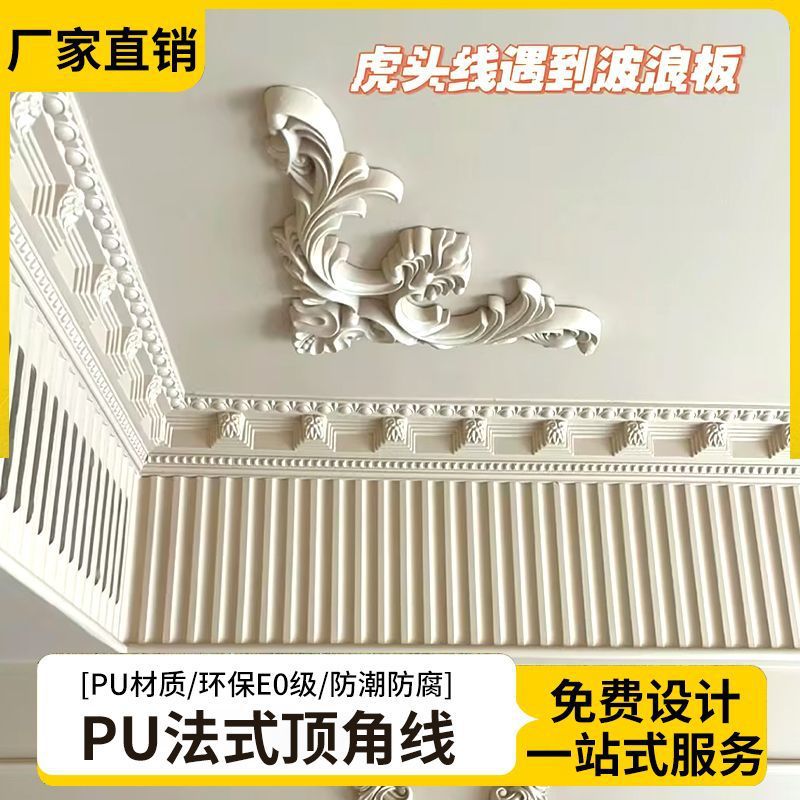 PU线条钢琴线波浪线搓衣板虎头角花轻奢背景墙边框装饰线条吊顶