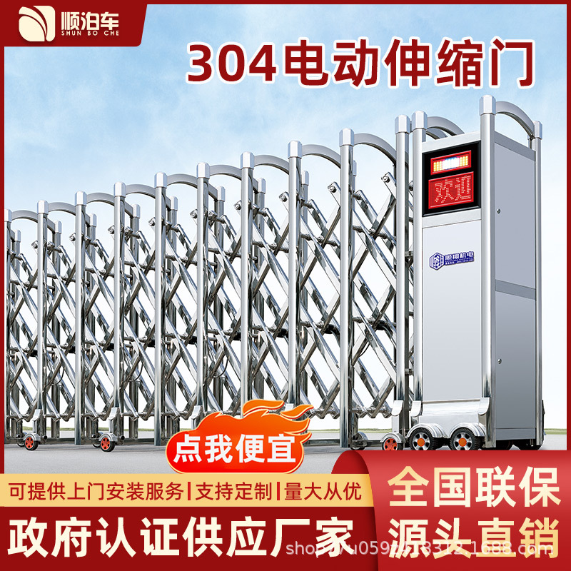 工厂大门不锈钢伸缩门厂家无轨智能电动门工地学校自动折叠伸缩门