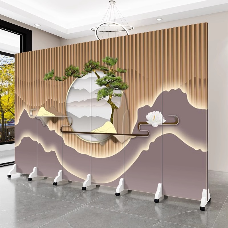 屏风隔断客厅入户正对门玄关卧室遮挡移动折叠墙办公室仿古山水画