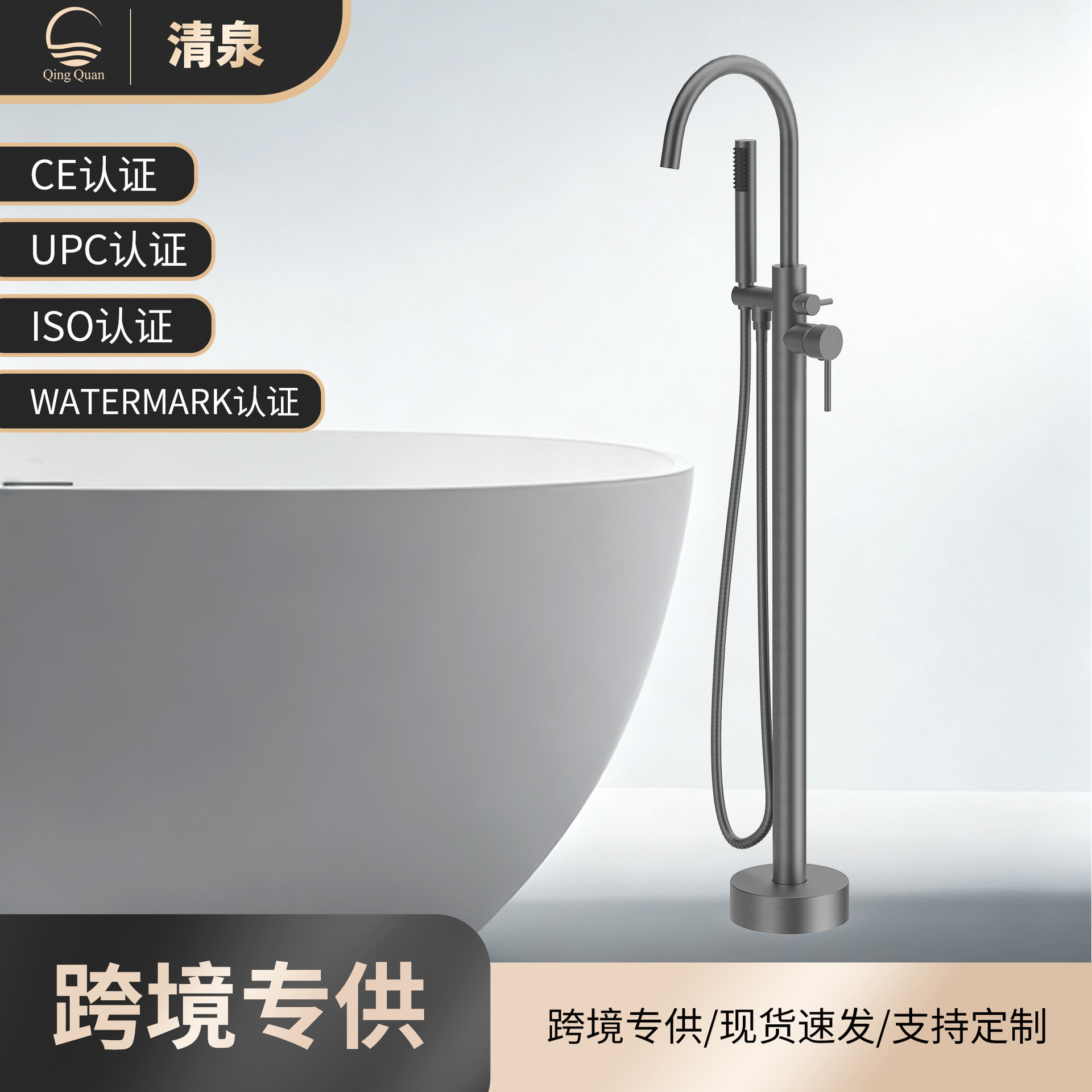跨境浴缸水龙头全铜淋浴花洒套装落地立柱盆冷热水阀家用缸边龙头