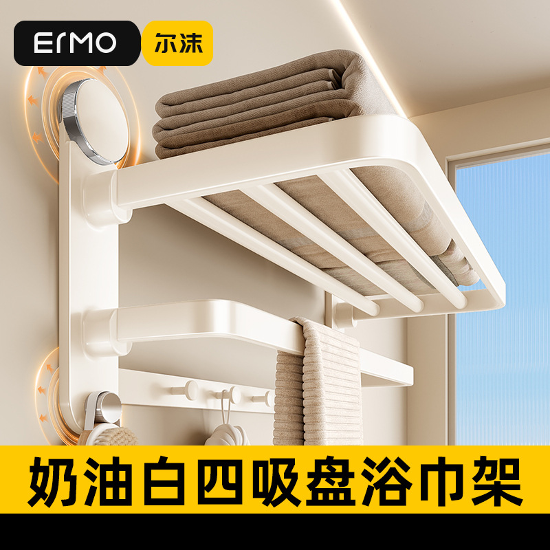 吸盘毛巾架奶油风浴巾架卫生间浴室壁挂置物架挂杆免打孔收纳架子
