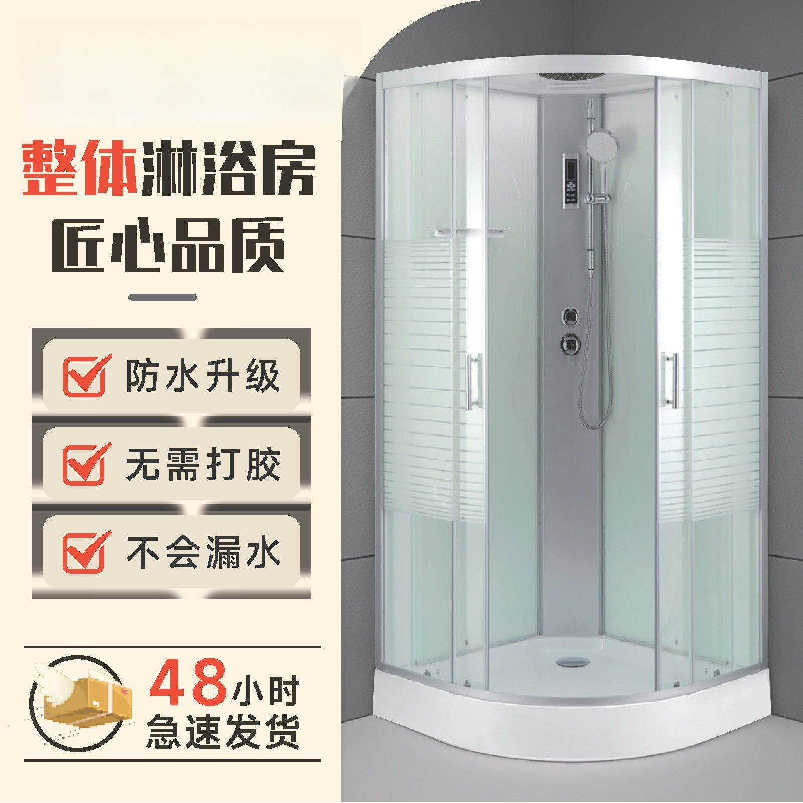 包邮整体淋浴房浴室家用扇形玻璃小户型淋浴房一体式封闭式洗澡房
