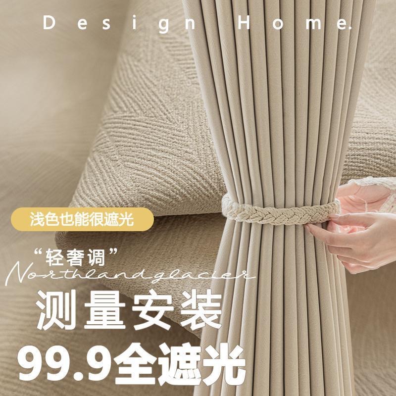 新款双面雪尼尔棉麻遮光窗帘卧室高级感客厅阳台中古风成品窗帘布