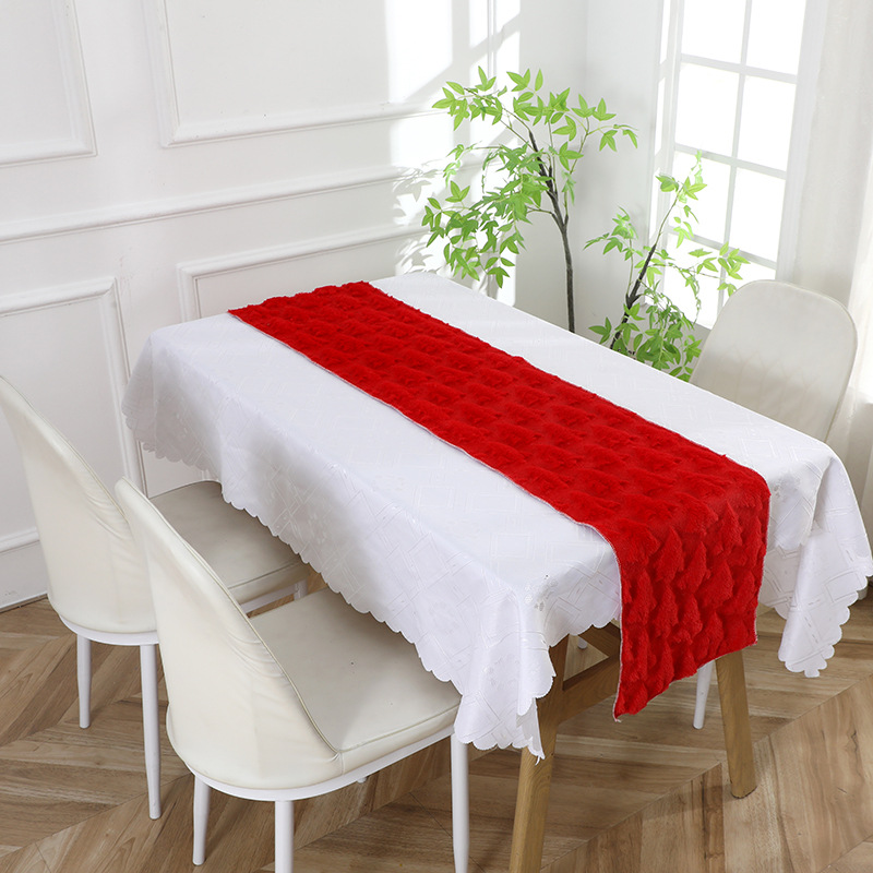 亚马逊圣诞桌旗新款雪花格子家用餐桌布电视柜茶几台布盖巾批发