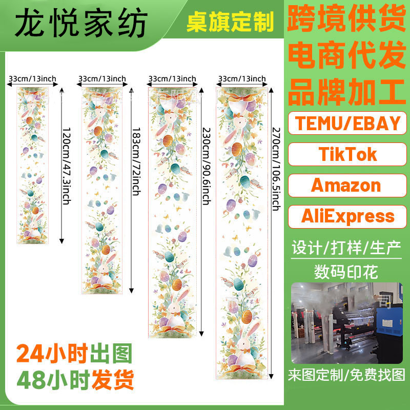 TEMU JIT跨境数码印花桌旗餐垫桌垫桌布节日聚会派对装饰茶旗