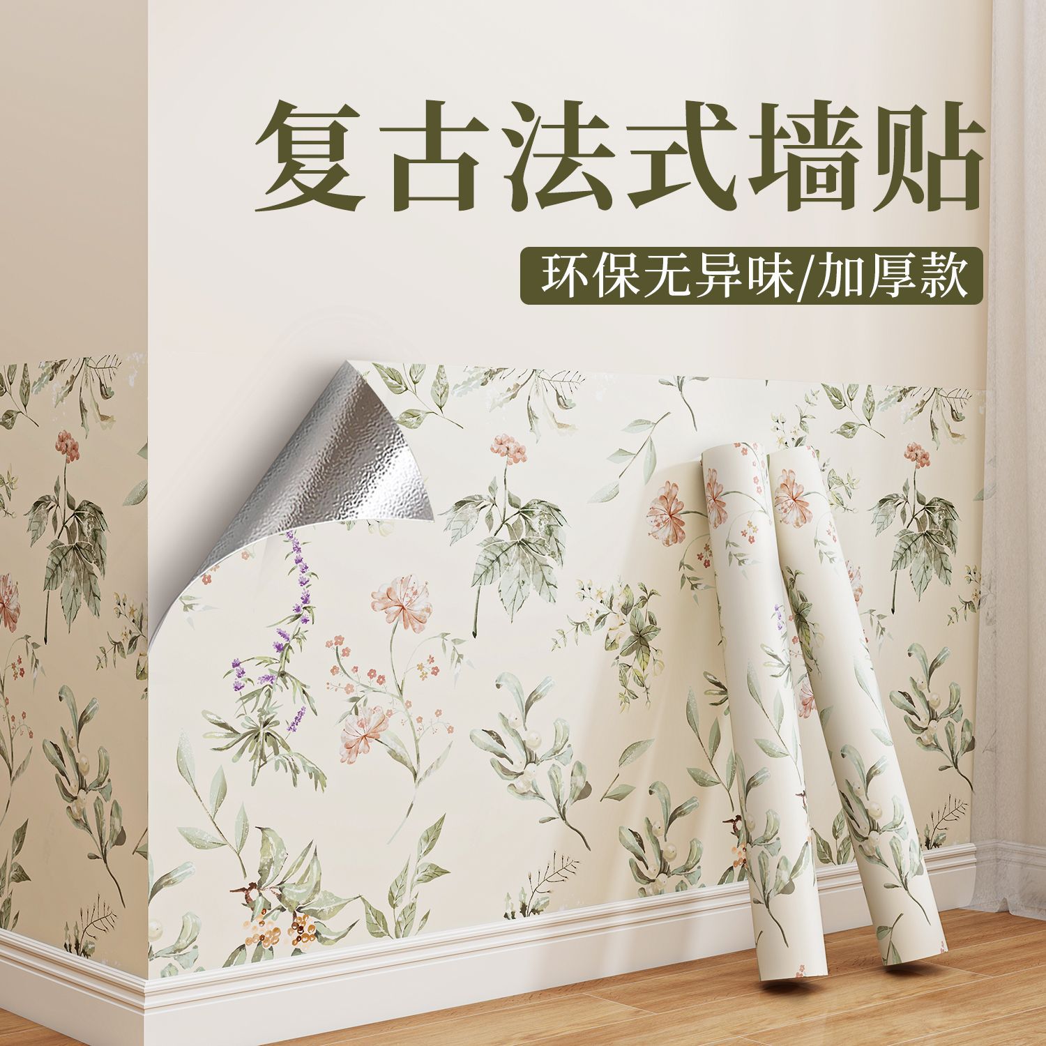 母婴级墙纸零甲醛自粘加厚美式复古贴纸家用客厅法式小碎花墙壁纸