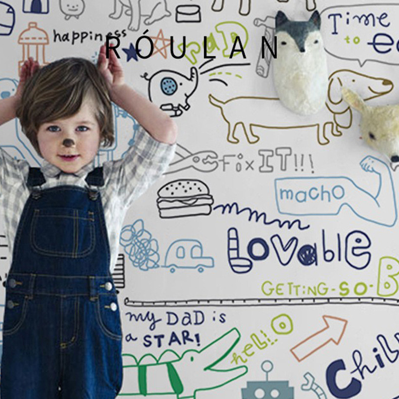 柔兰黑板画北欧风格壁纸男孩女孩卧室温馨墙纸墙布无纺布卡通手绘
