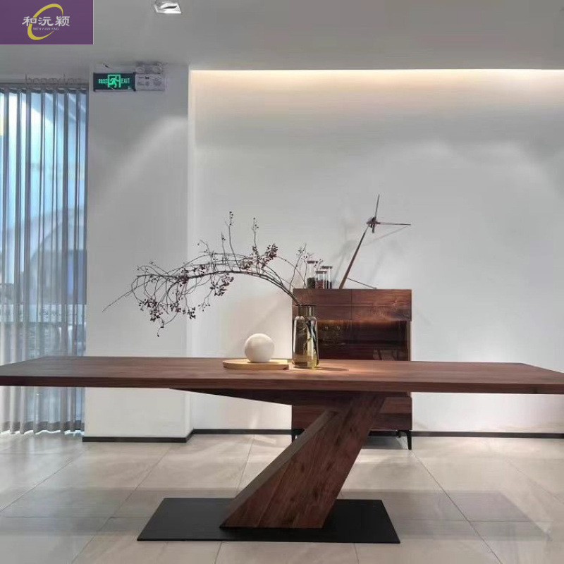 极简设计书桌办公桌工作台中古侘寂风现代实木长桌简约长方形桌子