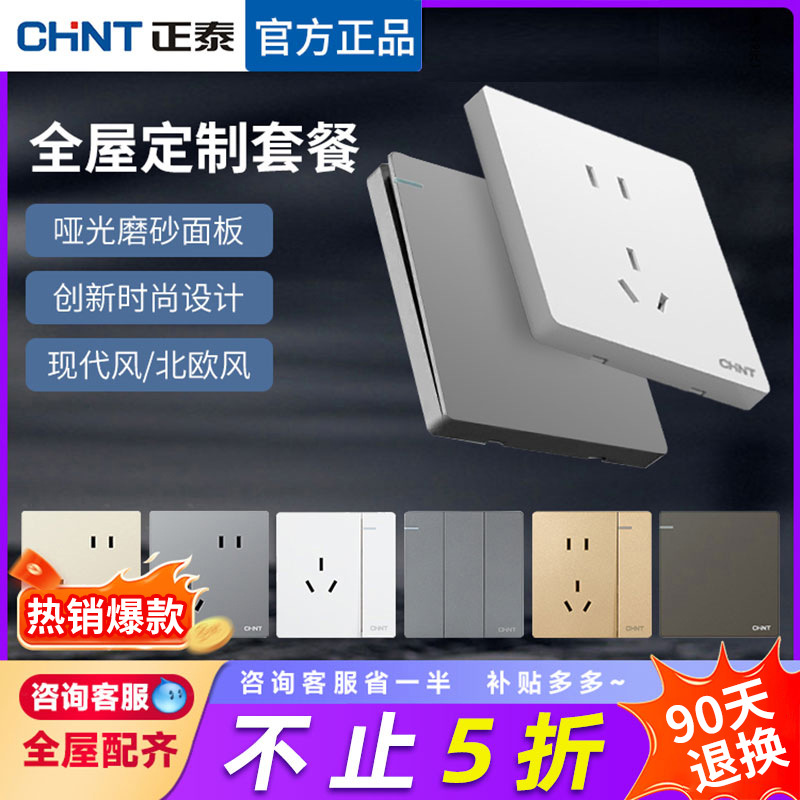 正泰开关插座面板大板五孔墙壁空调带灯86型16安暗装一开6R白