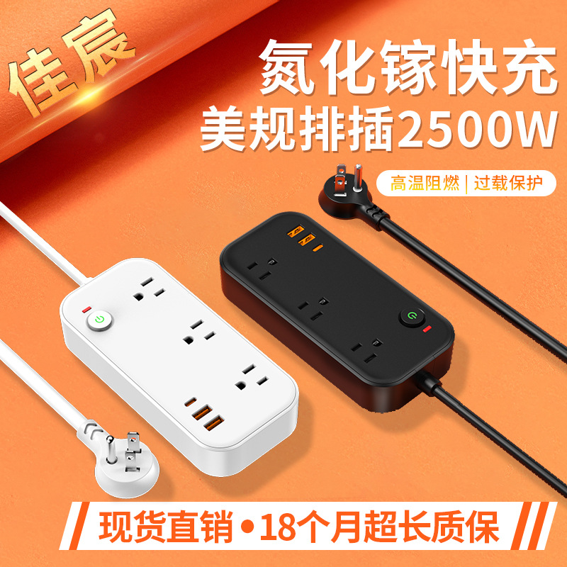 美标插排美式PD20W快充排插家用办公6孔3位插排TYPEC口美标插线板