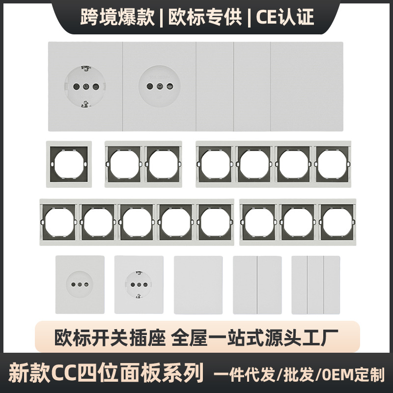 跨境CC银色欧规插座面板简约家用欧式墙开关耐用欧标插座开关批发