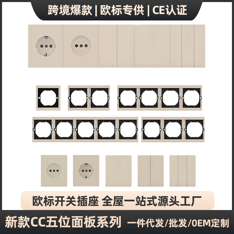 跨境专供欧标插座面板16A家用欧式墙壁插座阻燃保护欧规开关插座