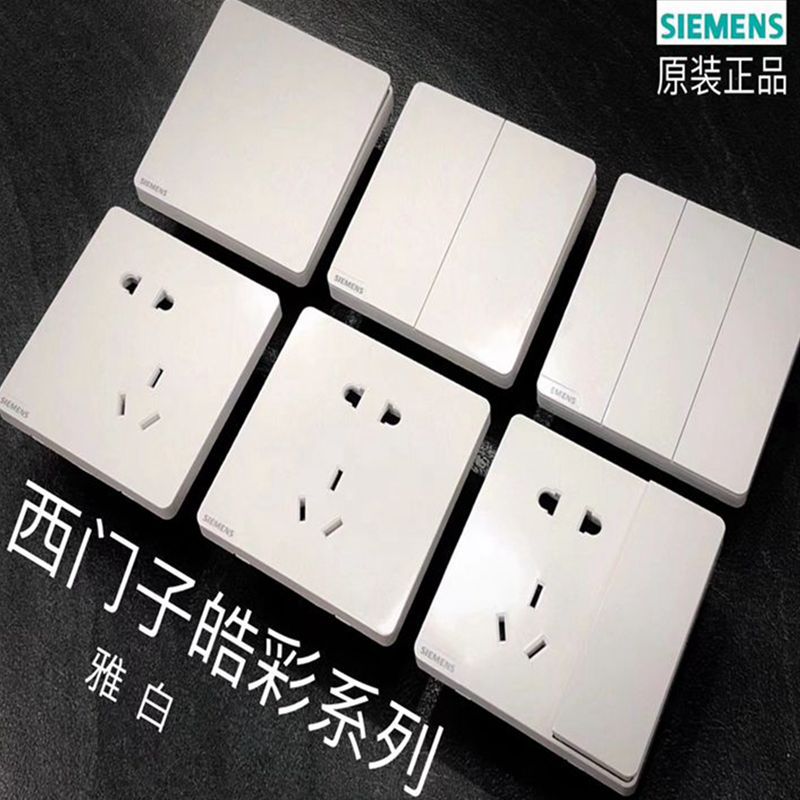 【官方正品】西门子开关插座皓彩白色面板错位斜五孔86型家用套餐
