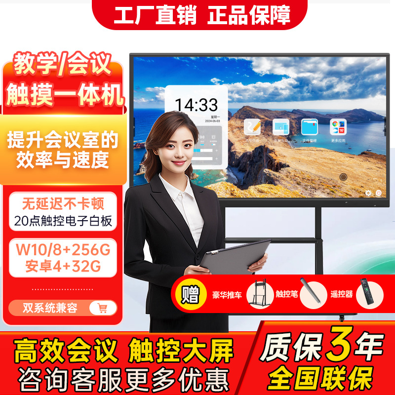 外贸55寸65寸多媒体教学一体机培训电子白板办公触控远程会议平板