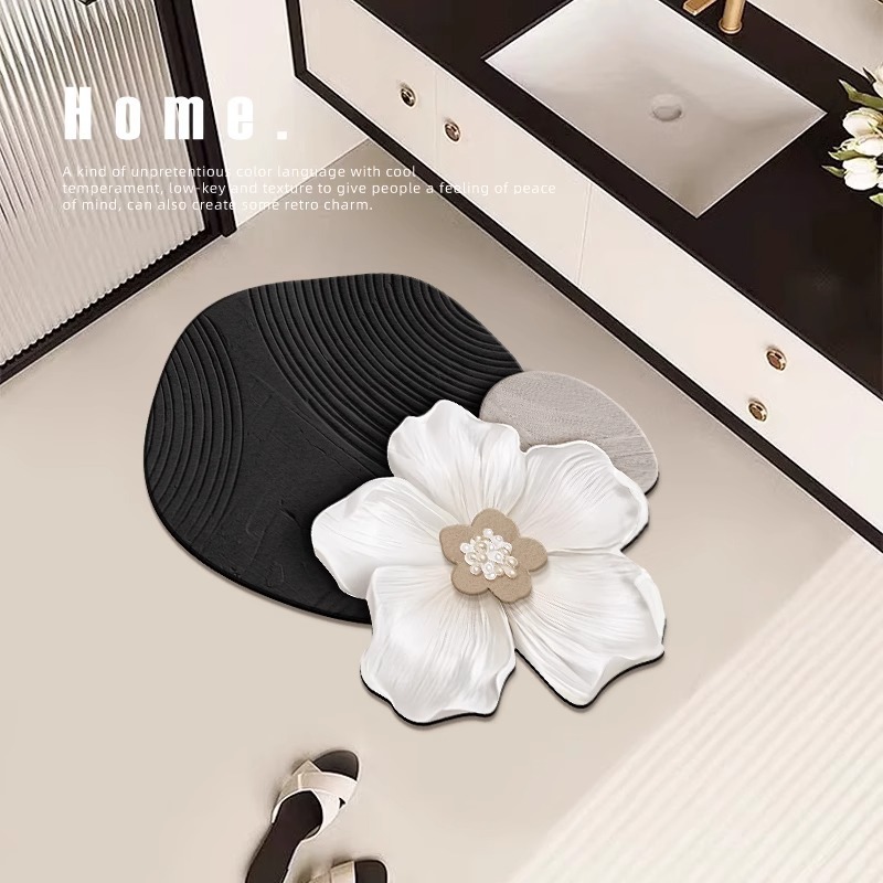 跨境简约硅藻泥地垫浴室异形花卉防滑脚垫卫生间门口吸水速干地垫