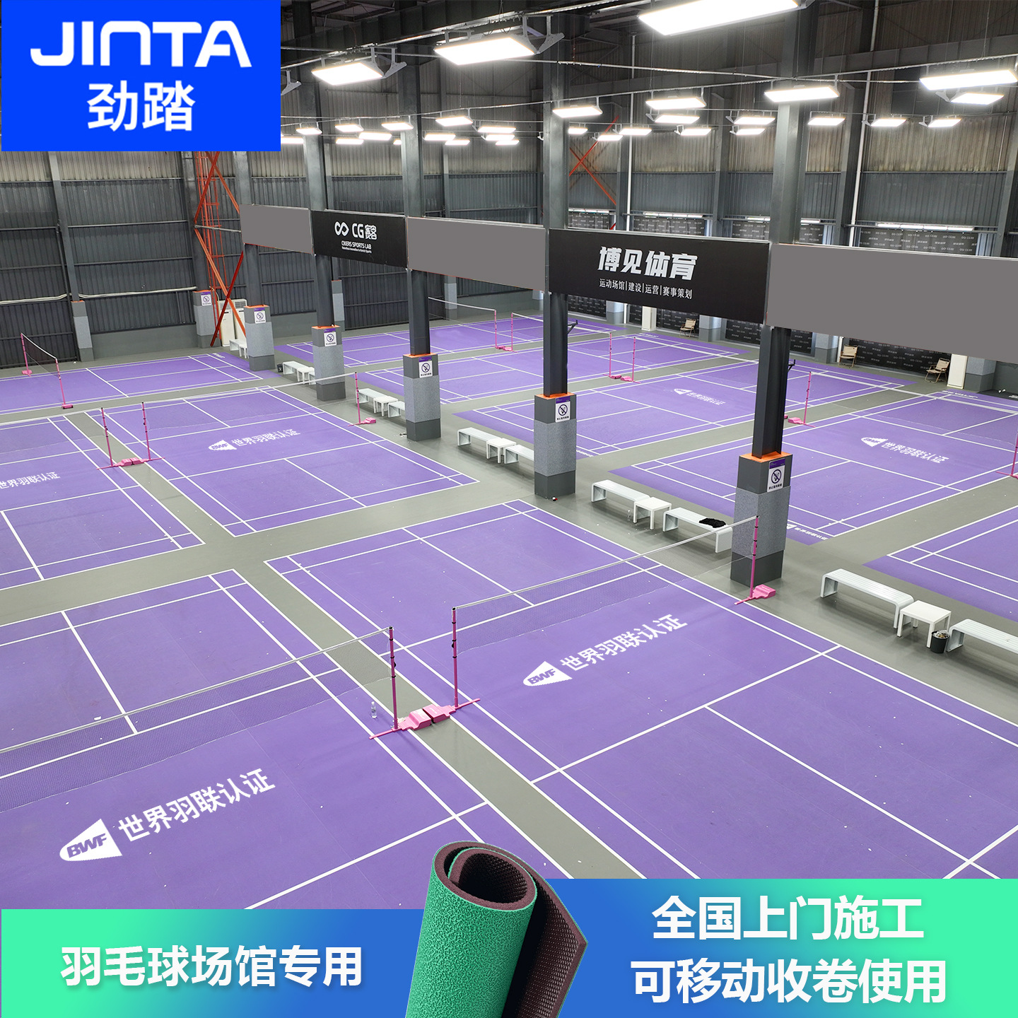劲踏羽毛球地胶室内可收卷PVC塑胶地板专业匹克球地胶垫气排球地