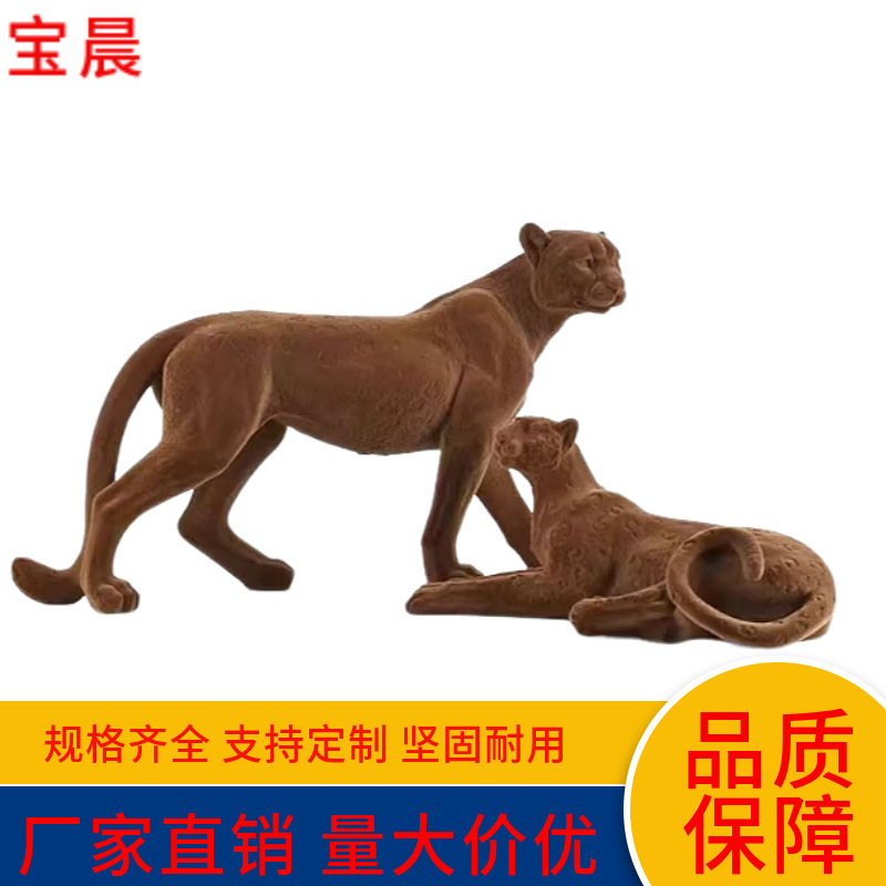 植绒金钱豹动物创意摆件客厅 玄关办公室样板间摆件 树脂摆件定制
