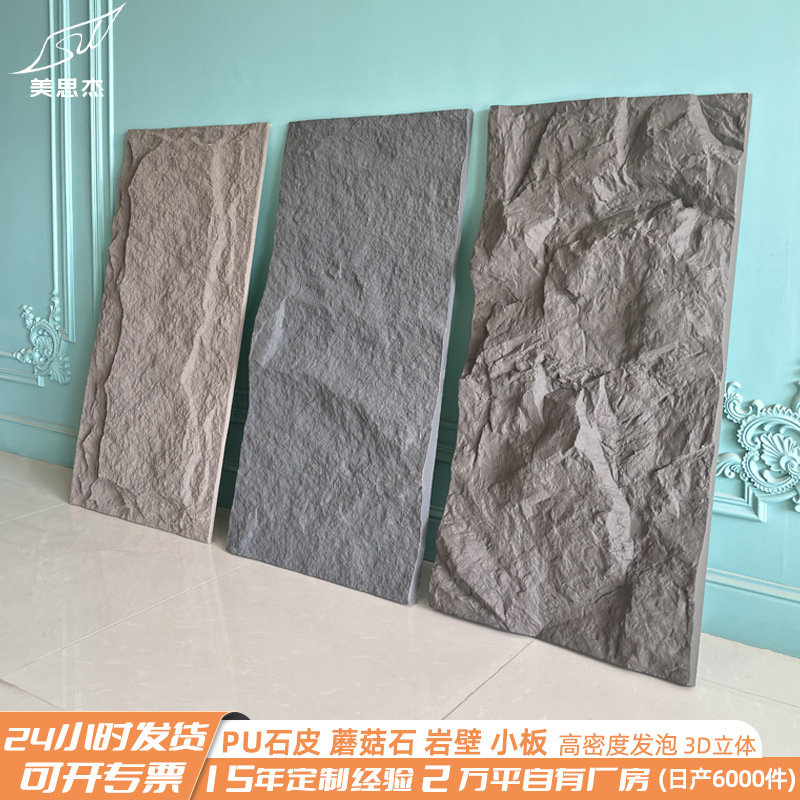 pu石皮大板轻质文化石背景墙外墙砖仿真石材饰面板蘑菇石墙贴墙纸