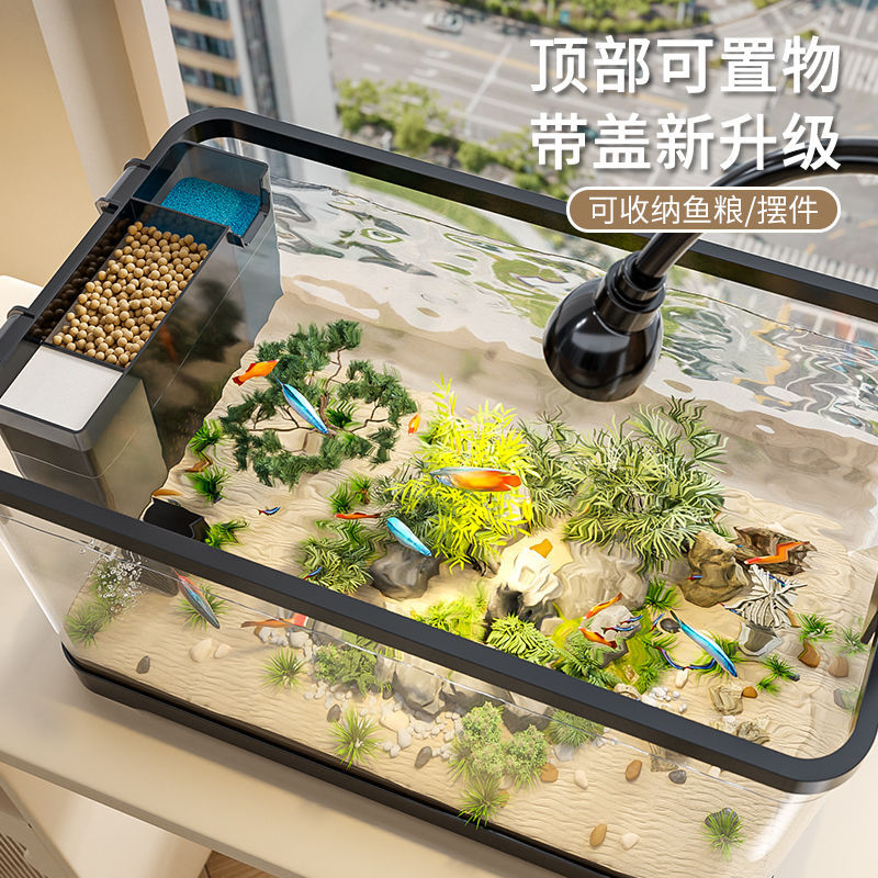 金鱼缸小型客厅生态水族箱2025新款过滤制氧一体机豪华造景生态缸