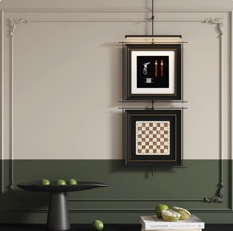 高级轻奢金属杆氛围灯壁灯装饰画两幅画酒店餐厅吊杆走廊尽头挂画