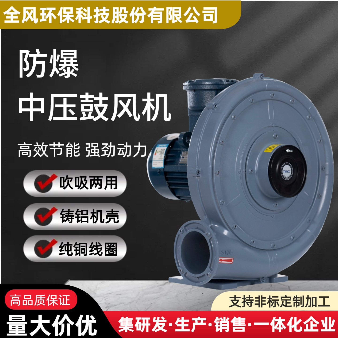 TWYX中压防爆鼓风机粉尘输送易燃气体输送鼓风机2.2KW防爆鼓风机